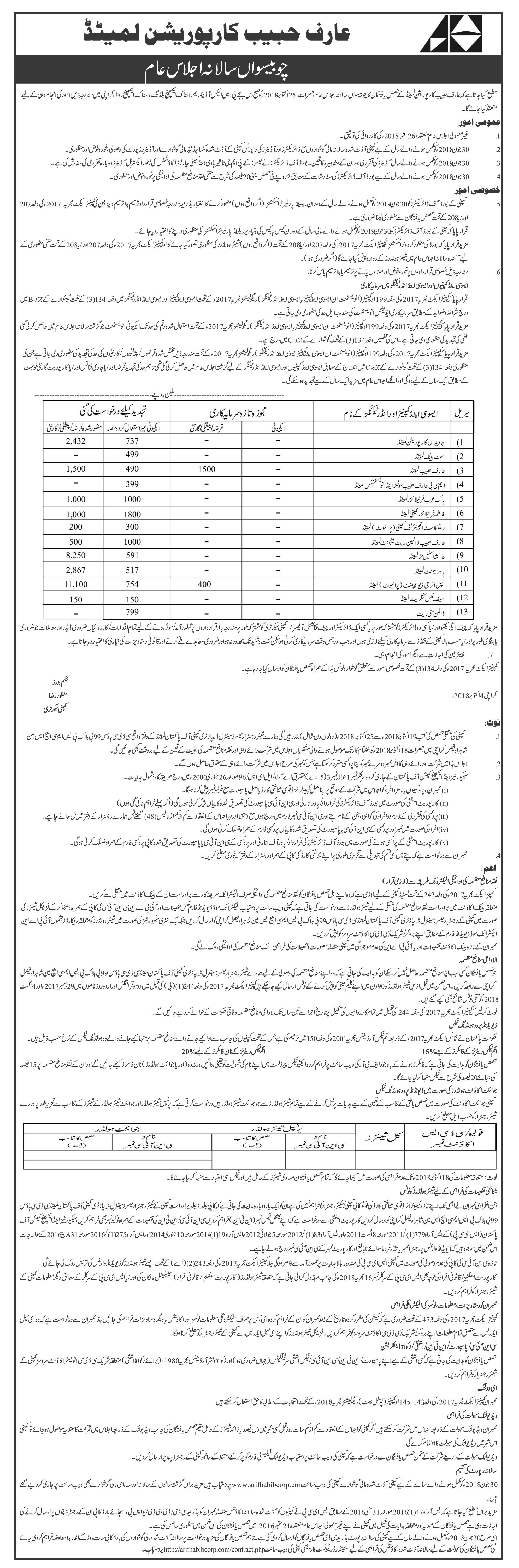 Notice of 19th AGM of the Shareholders of Arif Habib Corporation Limited – Urdu