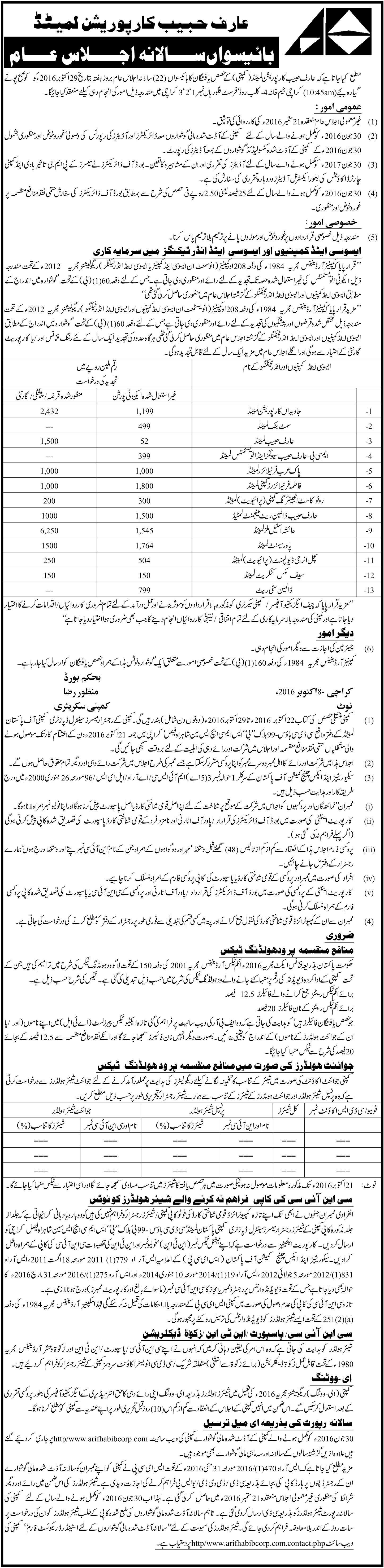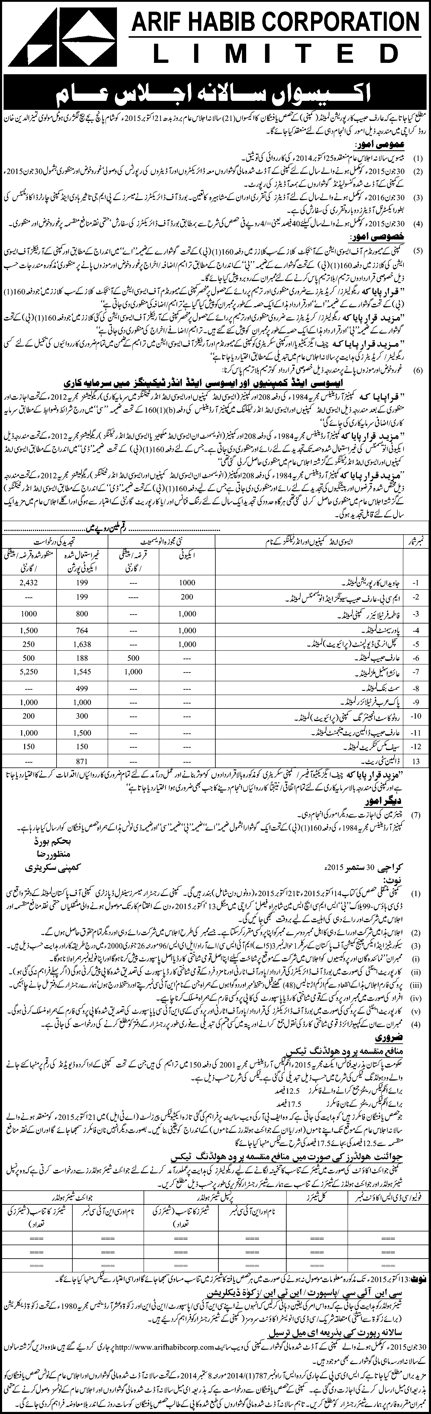 Notice of 21st AGM of the Shareholders of Arif Habib Corporation Limited - Urdu