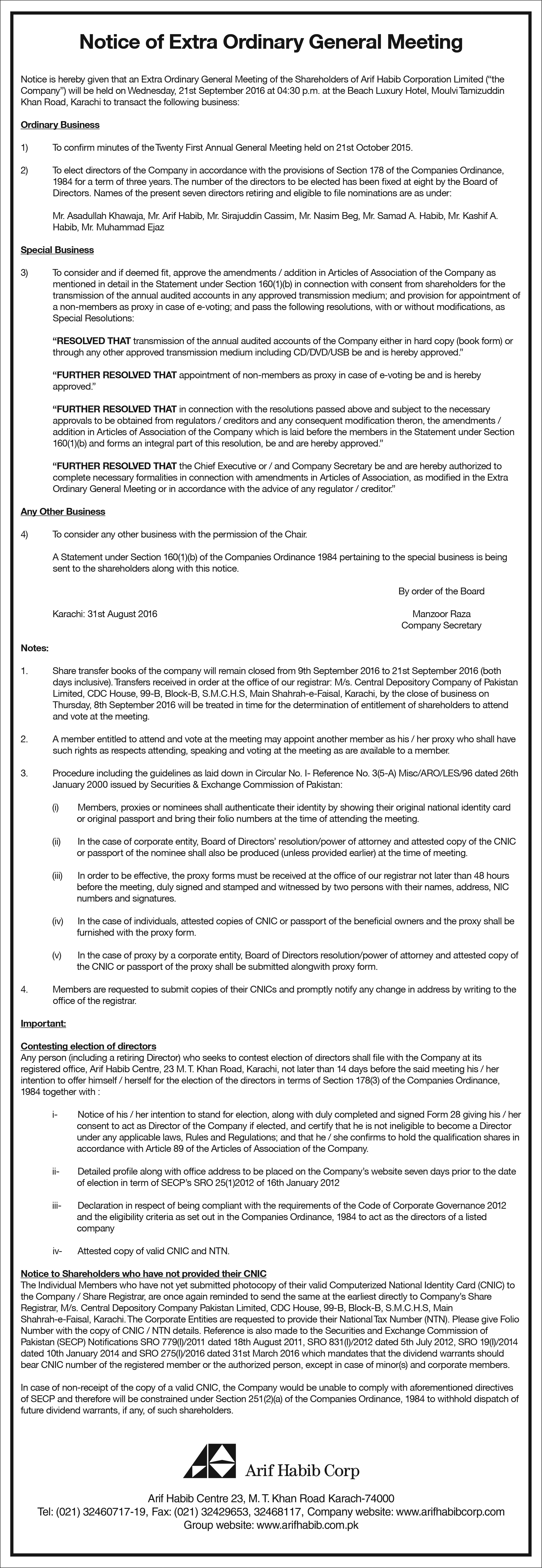 AHCL - EOGM Notice Business Recorder- 31-Aug-2016 – English