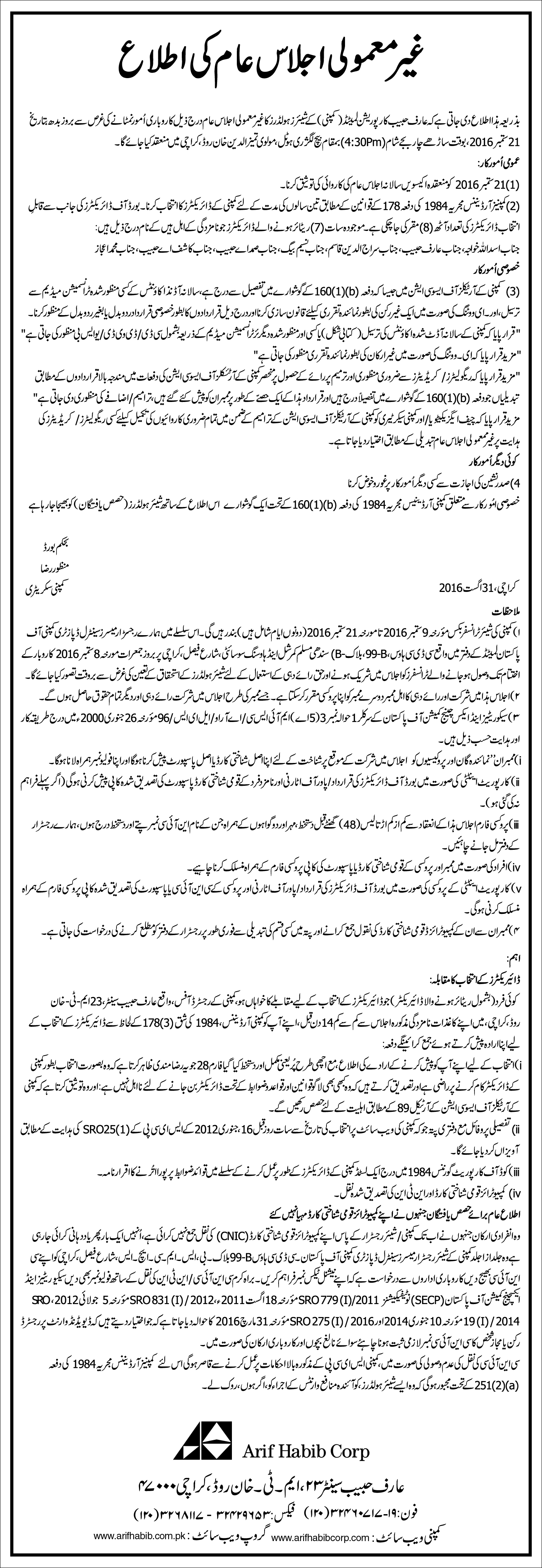AHCL -EOGM Notice Naqa-e-Waqt- 31-Aug-2016 – Urdu